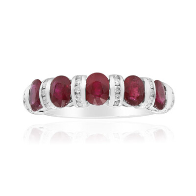 Deze prachtige AAA Mozambique Robijn ring toont vijf levendige robijnen, aangevuld met fonkelende ronde briljant SI2 diamanten gezet in glanzend 14K witgoud. Deze ring is perfect voor elegante avonden of om een vleugje luxe toe te voegen aan alledaagse kleding en getuigt van verfijnde stijl. Combineer hem met een klassieke zwarte jurk of formele kleding voor een onvergetelijke indruk.
