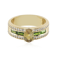 Ontdek de allure van zeldzame edelstenen met deze fascinerende 9K geelgouden ring met een 0,599ct onbehandelde gele Tanzaniet uit Tanzania. Omringd door fonkelende zirkonen en geaccentueerd met Russische diopside, schittert deze ring met raffinement. Perfect om een vleugje elegantie toe te voegen aan elk ensemble, het is een schat voor verzamelaars en een prachtig geschenk voor speciale gelegenheden.