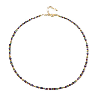 Deze prachtige ketting heeft een levendige reeks facetgeslepen edelstenen, waaronder gele, blauwe en roze saffieren, robijnen en Braziliaanse smaragden, in totaal 33,381 karaat. Dit sieraad van 925 sterling zilver met goudplating combineert moeiteloos elegantie met veelzijdigheid. Perfect om 's avonds te dragen of om een vleugje verfijning toe te voegen aan elk ensemble.