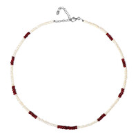 Ontdek elegantie met dit prachtige sterling zilveren collier met 31,493 ct Indiase robijnen en gekweekte zoetwaterparels uit China. De sierlijk geslepen stenen en gevarieerde parelmaten creëren een verfijnde look, perfect voor zowel casual als formele gelegenheden. Combineer dit veelzijdige sieraad met een cocktailjurk of een mooie blouse om een vleugje verfijning aan je ensemble toe te voegen.