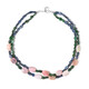 Maak kennis met een opvallende ketting gemaakt van kleurrijke edelstenen en gezet in 925 Sterling Zilver. Dit sieraad van 45-49 cm combineert levendige tinten roze, blauw en groen en creëert zo een speelse maar toch verfijnde look. Ideaal voor zowel casual uitjes als elegante diners. Het paar past prachtig bij verschillende outfits en voegt een vleugje stralende charme en elegantie toe aan je ensemble.