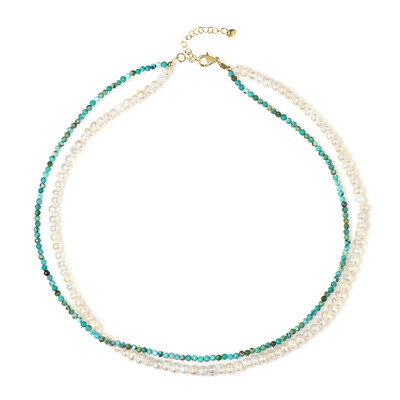 Deze prachtige ketting combineert het levendige blauw van Amerikaanse turkoois (23,085ct) met de klassieke elegantie van Chinese zoetwaterparels. Delicaat geregen aan een 45-50 cm vergulde 925 Sterling zilveren ketting, creëren deze facetgeslepen kralen en fancy parels een tijdloze stijl. Perfect om een vleugje kleur toe te voegen aan een outfit voor overdag of voor een avondensemble, het is een veelzijdig accessoire dat zeker zal opvallen. De verstelbare lengte zorgt ervoor dat hij bij elke halslijn past.