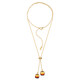 Deze prachtige ketting heeft twee Baltic Sunrise Ambers uit Polen, prachtig gezet in een verguld sterling zilveren ontwerp. Met een totaal gewicht van 1,4 ct stralen de antieke kussengeslepen stenen een warme gloed uit. De verstelbare ketting (42-47 cm) maakt het een veelzijdig accessoire, perfect voor zowel casual als formele settings. Combineer het met een eenvoudige jurk voor een elegante avondlook.