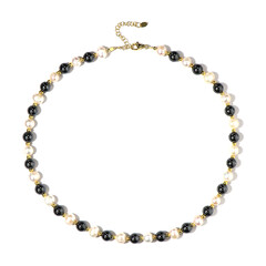 Deze prachtige ketting heeft stralende zwarte hematietkralen uit de Verenigde Staten, elegant gecombineerd met gouden hematietaccenten en witte gekweekte zoetwaterparels uit China. De ketting is gemaakt van verguld 925 sterling zilver en straalt een verfijnde allure uit. Perfect voor formele gelegenheden of om een elegante touch toe te voegen aan je dagelijkse kleding. De ketting meet ongeveer 45-50 cm, zodat hij sierlijk om je hals zit.