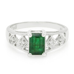 Ontdek de allure van deze Bahia Emerald Silver Ring, met een prachtige ovaalgeslepen smaragd van 1,02 ct uit Brazilië. Dit sieraad wordt geaccentueerd door 48 briljantgeslepen Cambodjaanse zirkonia stenen en betovert elke blik. Het is gemaakt van platina geplateerd 925 sterling zilver en past perfect bij elegante avondkleding. Verhoog je stijl met deze prachtige ring en laat de levendige groene tint een vleugje natuur in je ensemble brengen.