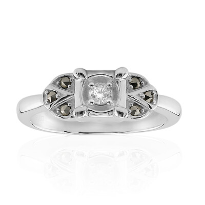 Ontdek de tijdloze allure van onze sterling zilveren ring, bekroond met een 0,06 ct briljant geslepen diamant en geaccentueerd door Oostenrijkse marcasietstenen van in totaal 0,084 ct. Met een gecombineerd edelsteengewicht van 0,144 ct pronkt deze ring met elegantie in één oogopslag. De subtiele schittering en het klassieke ontwerp maken er een veelzijdig stuk van, perfect voor zowel alledaags gebruik als speciale evenementen. Combineer hem met je favoriete avondkleding voor een ingetogen maar verfijnde touch.
