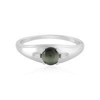 Deze lichtgevende sterling zilveren ring heeft een cabochon van 0,81 ct Braziliaanse kattenoogkwarts, die mystiek uitstraalt met zijn fascinerende kleur. Geflankeerd door twee slanke baguette-geslepen Cambodjaanse zirkonen van in totaal 0,108 ct, zorgt het ontwerp voor een elegante balans. De ring is gemaakt van 925 sterling zilver, heeft een totaal edelsteengewicht van 0,918 ct en belooft een tijdloze toevoeging aan elke collectie te zijn. Hij is perfect voor zowel dagelijkse elegantie als avondglamour en is veelzijdig genoeg om elke outfit te verbeteren.