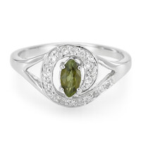 Ontdek de allure van deze ring, met een levendige 0,25 ct marquise geslepen kopertermalijn uit Mozambique, genesteld in de omhelzing van platina verguld 925 sterling zilver. Dit sieraad straalt tijdloze elegantie uit en wordt geaccentueerd door elf fonkelende zirkonia's van in totaal 0,168 ct uit Cambodja. Het ingewikkelde ontwerp vormt een harmonieuze mix van kleur en licht, waardoor deze ring perfect is voor zowel overdag als 's avonds. Maak je look compleet met dit prachtige sieraad dat in het oog springt en gesprekken op gang brengt.
