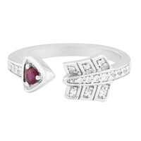 Deze ring is gemaakt van glanzend 925 sterling zilver en is bezet met een fascinerende Madagaskar robijn van 0,107 karaat, die een vleugje kleur toevoegt aan elk ensemble. De band is versierd met een reeks fonkelende witte saffieren uit Madagaskar van in totaal 0,126 karaat, die je look een extra glans geven. Deze ring, die perfect geschikt is voor alledaagse elegantie of speciale gelegenheden, past bij zowel casual als formele outfits en voegt een vleugje verfijning toe aan je sieradencollectie.