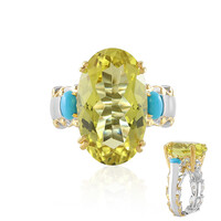 Ontdek de stralende schoonheid van deze Gems en Vogue ring, met een 10,422 ct Braziliaanse Ouro Verde kwarts met een prachtige ovale snede geflankeerd door twee ongerepte Sleeping Beauty turkooizen cabochons van in totaal 0,36 ct. Dit sieraad is gemaakt van gepolijst 925 sterling zilver en combineert de levendige citroentint met serene hemelsblauwe accenten voor een onweerstaanbare allure. Het is een ideale keuze voor zowel speciale gelegenheden als dagelijkse elegantie en past uitzonderlijk goed bij zowel pastelkleuren als felle kleuren.