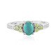 Ontdek de allure van deze prachtige ring met een fascinerende 0,613 ct Tyrone turquoise cabochon uit de Verenigde Staten, geaccentueerd door 6 levendige peridots en 12 glinsterende zirkonen. Gemaakt van 925 sterling zilver met een slanke platina plating, biedt dit stuk een moderne maar tijdloze uitstraling. Perfect voor casual uitjes of speciale gelegenheden. Combineer het met een vloeiende jurk om de elegantie en charme te benadrukken.