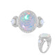 Deze prachtige ring toont een betoverende Ethiopische Welo opaal in het midden, omringd door twee andere opalen en fonkelende Cambodjaanse zirkonia's. Hij is gemaakt van verguld 925 sterlingzilver en heeft een verfijnd en elegant ontwerp. Perfect voor avondevenementen of om een vleugje verfijning toe te voegen aan alledaagse kleding, zal het betoverende kleurenspel van deze ring elk oog vangen.