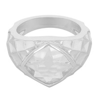 Deze opvallende ring uit de MONOSONO COLLECTIE heeft een prachtige 3,09 ct fancy-cut Braziliaanse witte kwarts gezet in 925 Sterling Zilver van hoge kwaliteit. De dimensionale facetten van de edelsteen glinsteren van schittering en het substantiële zilvergewicht van ongeveer 6,76 g onderstreept de kwaliteit van de ring. Dit eigentijdse stuk van 23x21 mm betovert met zijn gedurfde geometrische ontwerp en maakt een statement bij elke gelegenheid. Combineer hem met een strakke monochrome outfit voor een vleugje moderne elegantie.