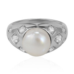 • Zilveren ring met een Witte zoetwater kweekparel (Michelle Albala)