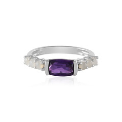 Ontdek de allure van Marokkaanse amethisten met deze prachtige sterling zilveren ring. Met twee prachtige baguette-geslepen stenen van elk 6x3 mm geeft deze ring een moderne draai aan klassieke elegantie. Perfect om kleur toe te voegen aan je alledaagse look of om je te kleden voor een speciale gelegenheid. Combineer met je favoriete avondkleding voor een vleugje verfijning.