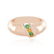 Deze ring introduceert een levendig huwelijk van Tanzaniaanse pracht en praal en toont een duo fonkelende Tsavoriet edelstenen naast twee zonnige gele Saffieren. Elke edelsteen, vakkundig rondgeslepen om zijn glans te tonen, is veilig genesteld in een 925 sterling zilveren band, prachtig verguld met roségoud. Het gladde, eigentijdse ontwerp van de band zorgt voor comfortabel dagelijks dragen en maakt het een veelzijdige toevoeging aan elke sieradencollectie. Het kleurenspel tussen de weelderige groene en warme gele tinten, in totaal 0,265 karaat, biedt een fris, opvallend contrast dat perfect is om zowel casual als formele outfits op te fleuren.