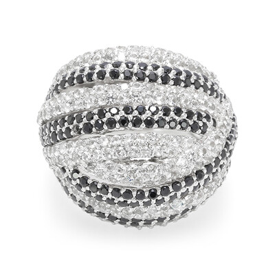 Chique zwarte spinel en witte topaas zilveren ring, Thailand, 5.979ct